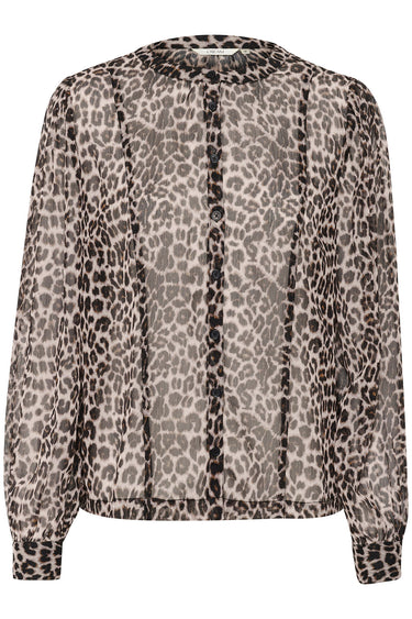 OBS! Fjernlager. Levering kan blive forlænget med 2-3 dage, hvis varen ikke findes i vores butik lige nu.Flot bluse fra Cream med lange ærmer, rund hals og en fin transparent kvalitet.Blusen har også et flot leopard print og knaplukning langs fronten.