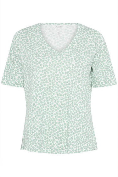 OBS! Fjernlager. Levering kan blive forlænget med 2-3 dage, hvis varen ikke findes i vores butik lige nu.Fin tee fra Part Two med korte ærmer, v-udskæring i halsen og et flot print.