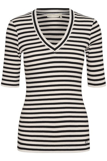 DagnaIW Striped V TShirt Black / Whisper White 30107270