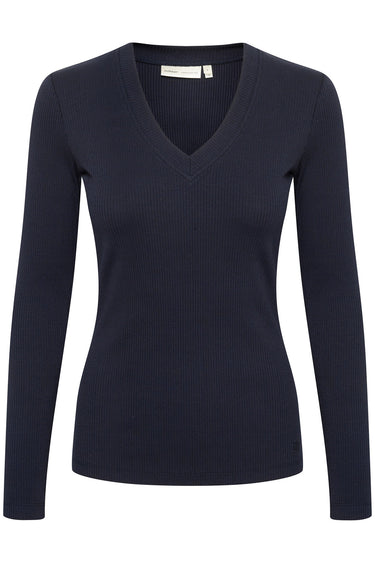 OBS! Fjernlager. Levering kan blive forlænget med 2-3 dage, hvis varen ikke findes i vores butik lige nu.Fin basis top fra InWear med v-udskæring, lange ærmer og en tætsiddende pasform.