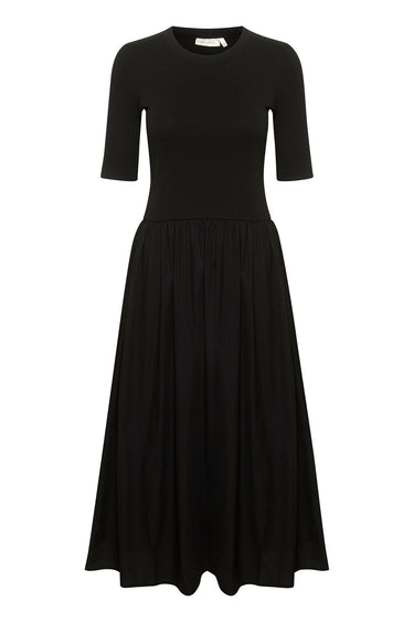 - OBS! Fjernlager. Levering kan blive forlænget med 2-3 dage, hvis varen ikke findes i vores butik lige nu.Flot kjole fra InWear med ½ lange ærmer, rund hals og en fin feminin silhuet. Kjolen har en tætsiddende overdel og et skønt fyldigt skørt.