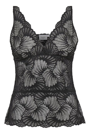 OBS! Fjernlager. Levering kan blive forlænget med 2-3 dage, hvis varen ikke findes i vores butik lige nu.Feminin top fra Saint Tropez med smalle justerbare skulderstropper, v-udskæring og en smuk blondekvalitet.