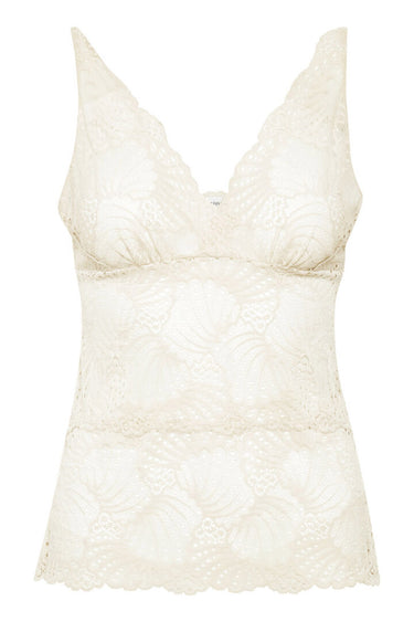 OBS! Fjernlager\nLeveringen kan blive forlænget med 1-2 dage, hvis varen ikke er at finde i vores butik lige nu.\n\nModel DaisySZ top BLUSER 30510200 IceFeminin top fra Saint Tropez med smalle justerbare skulderstropper, v-udskæring og en smuk blondekvalitet.