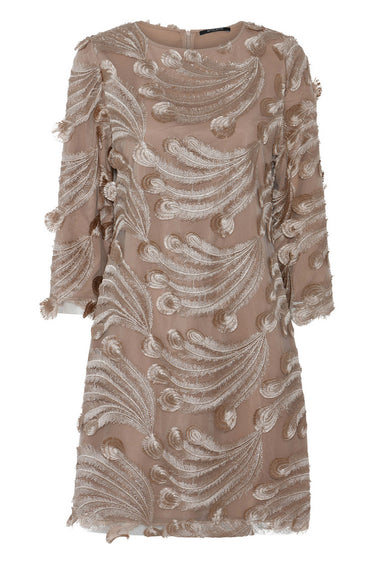 - DandelionBBKata dress is a short dress with a straight fit, three-quarter length sleeves, and structured embroidery with discreet fringes. Perfect for festive occasions.Style with heels and an elegant clutch for a gala or New Year's, or pair it with tights and boots for a more understated but feminine everyday look.- Straight fit- Short length, 92cm in size 36- Three-quarter length sleeves- Lined with a zipper in the back