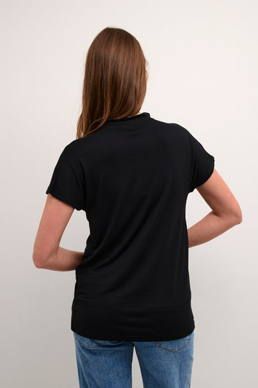 OBS! Fjernlager. Levering kan blive forlænget med 1-2 dage, hvis varen ikke findes i vores butik lige nu.Sød t-shirt fra Karen By Simonsen med korte ærmer og høj hals. T-shirten har en dejlig kvalitet og et flot stilrent udtryk.