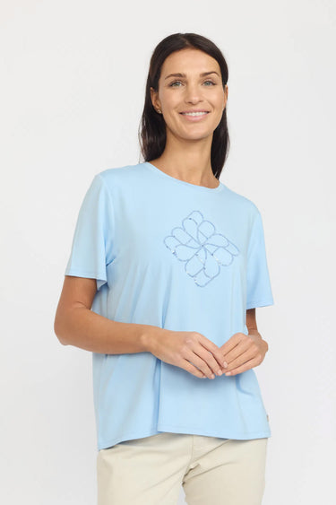 OBS! Fjernlager. Levering kan blive forlænget med 2-3 dage, hvis varen ikke findes i vores butik lige nu.Smart tee fra 2-Biz med korte ærmer, rund hals og et super fint motiv på brystet.