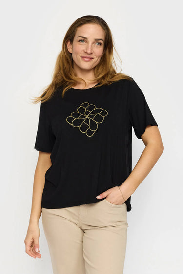 OBS! Fjernlager. Levering kan blive forlænget med 2-3 dage, hvis varen ikke findes i vores butik lige nu.Flot tee fra 2-Biz med korte ærmer, rund hals og et super fint broderet motiv på brystet.