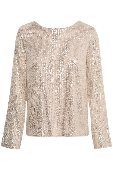 OBS! Fjernlager. Levering kan blive forlænget med 2-3 dage, hvis varen ikke findes i vores butik lige nu.Flot pailletbluse fra Part Two med lange ærmer, rund hals og en feminin v-udskæring i ryggen. Blusen har også en et dejlig blød foer og en afslappet pasform.