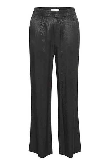 - OBS! Fjernlager. Levering kan blive forlænget med 2-3 dage, hvis varen ikke findes i vores butik lige nu.Super flotte bukser fra Karen By Simonsen med en bred elastikkant i taljen, et straight leg snit og en flot kvalitet.