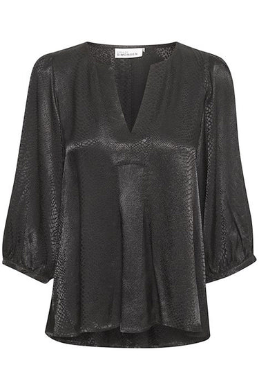 - OBS! Fjernlager. Levering kan blive forlænget med 2-3 dage, hvis varen ikke findes i vores butik lige nu.Flot bluse fra Karen By Simonsen med ¾ lange ærmer, rund hals med v-udskæring og en flot kvalitet.