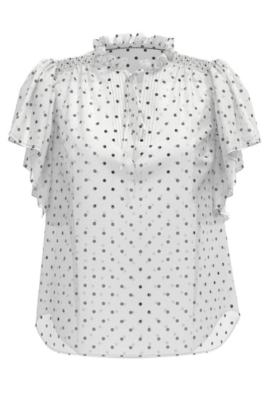 DionneCC Dot SS Frill Top 11Off white