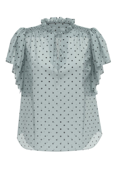 DionneCC Dot SS Frill Top 23Pale Blue