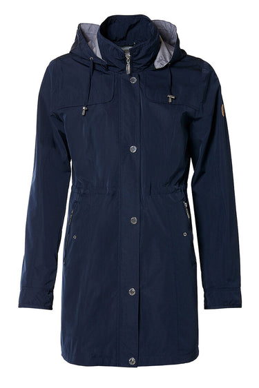 OBS! Fjernlager. Levering kan blive forlænget med 2-3 dage, hvis varen ikke findes i vores butik lige nu.En vind- og vandtæt regnjakke fra Danwear med tapede sømme og BIONIC FINISH ECO. Danske Danwear repræsenterer ren luksus og kvalitet samt tidløs stil med exceptionel holdbarhed. Jakken har en lynlås med trykknapslukning foran, der findes rummelige lommer, en inderlomme med knaplukning og en justerbar, aftagelig hætte med snøre. Indersiden af lommerne er i et blødt og behageligt materiale. En skøn og tidløs damejakke med smarte detaljer, som man kan have mange år frem.