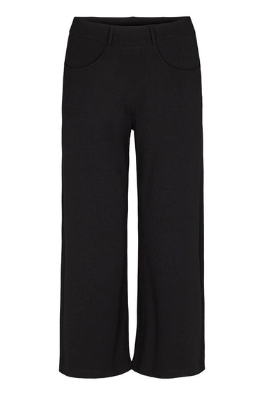 - Soft trousers with elastic inside waistband tube, rounded front pockets and belt loops.