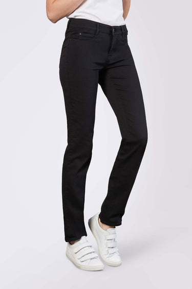 OBS! Fjernlager. Levering kan blive forlænget med 2-3 dage, hvis varen ikke findes i vores butik lige nu.Smarte jeans fra Mac med et straight-leg snit, en feminin silhuet og en flot blå vask.Bukserne har også en lækker kvalitet og lukkes med knap og lynlås i fronten.