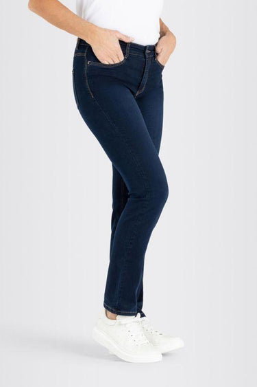 - Smarte jeans fra Mac med et straight-leg snit, en feminin silhuet og en flot blå vask.Bukserne har også en lækker kvalitet og lukkes med knap og lynlås i fronten.