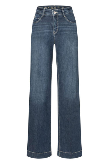 - Fed denim bukser fra Mac med høj talje og brede ben. Fra hoften og til det øverste af lårene går modellen lige ned, og bliver bred fra sidst på låret.