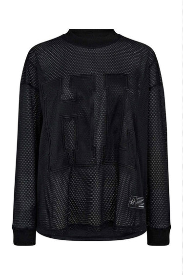 OBS! Fjernlager. Levering kan blive forlænget med 2-3 dage, hvis varen ikke findes i vores butik lige nu.Sporty mesh bluse fra Haute L'Amitié med lange ærmer, rund hals og et smart broderet logo på fronten.