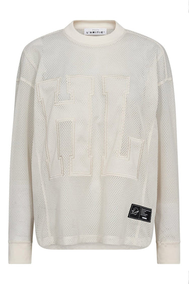 OBS! Fjernlager. Levering kan blive forlænget med 2-3 dage, hvis varen ikke findes i vores butik lige nu.Sporty mesh bluse fra Haute L'Amitié med lange ærmer, rund hals og et smart broderet logo på fronten.