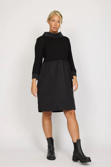 - OBS! Fjernlager. Levering kan blive forlænget med 2-3 dage, hvis varen ikke findes i vores butik lige nu.Super cool kjole fra 2-Biz med lange ærmer, en høj krave i halsen og et smart moderne udtryk.