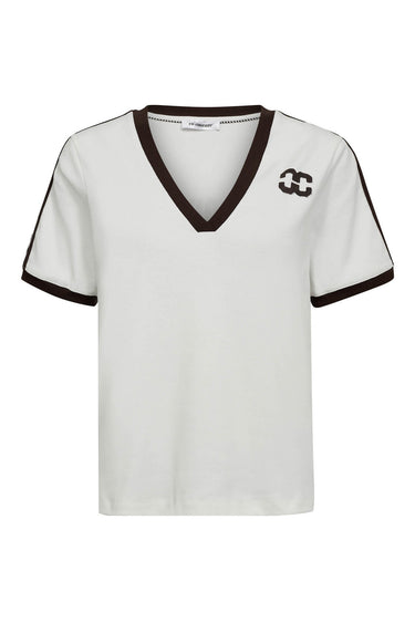 OBS! Fjernlager. Levering kan blive forlænget med 2-3 dage, hvis varen ikke findes i vores butik lige nu.Sporty tee fra Co'couture med korte ærmer, v-udskæring i halsen og smart tryk på ryggen.