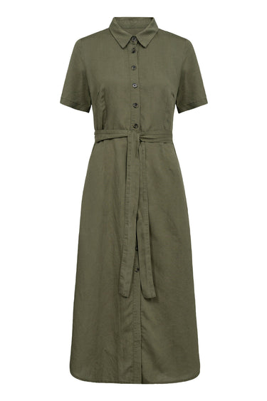 OBS! Fjernlager. Levering kan blive forlænget med 2-3 dage, hvis varen ikke findes i vores butik lige nu.Sød skjortekjole fra Part wo med korte ærmer, krave i halsen og knaplukning langs fronten.Kjolen har også et feminint snit og kommer med et bredt bindebælte til taljen.