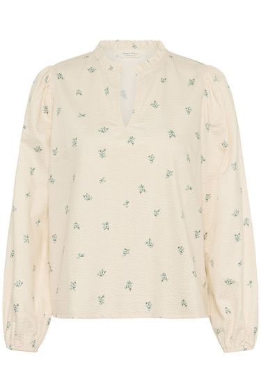 OBS! Fjernlager. Levering kan blive forlænget med 2-3 dage, hvis varen ikke findes i vores butik lige nu.Sød bluse fra Part Two med lange ærmer, v-udskæring i halsen og et super fint mini print.