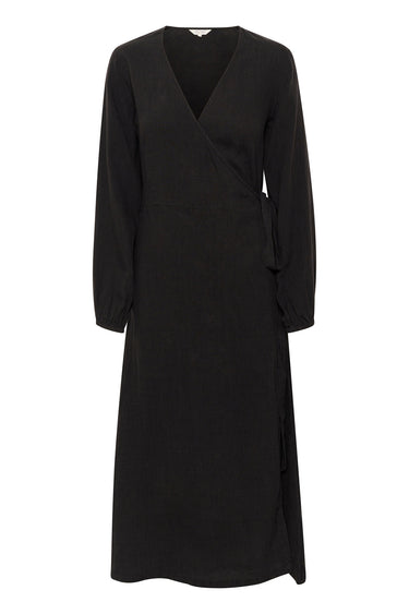 OBS! Fjernlager. Levering kan blive forlænget med 2-3 dage, hvis varen ikke findes i vores butik lige nu.Flot slå-om kjole fra Part Two med lange ærmer, v-hals og et bredt bindebånd i siden. Kjolen har også en lækker hør kvalitet og en feminin silhuet.