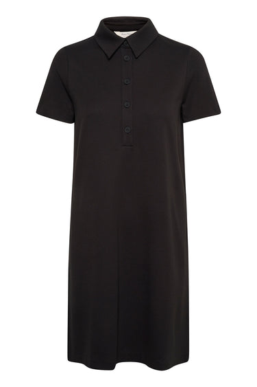 OBS! Fjernlager. Levering kan blive forlænget med 2-3 dage, hvis varen ikke findes i vores butik lige nu.Smart kjole fra Part Two med korte ærmer, skjortekrave i halsen og knaplukning over brystet.Kjolen har også en dejlig kvalitet og et fint enkelt udtryk.