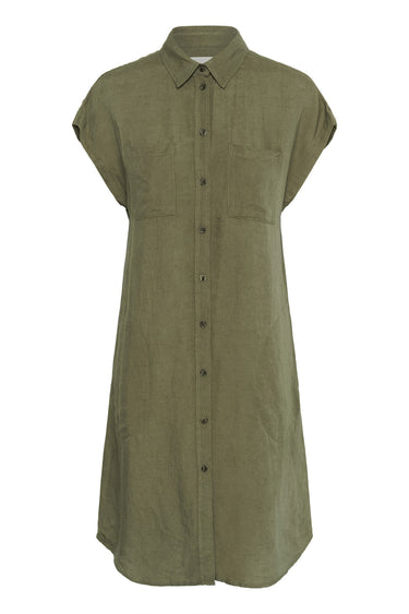OBS! Fjernlager. Levering kan blive forlænget med 2-3 dage, hvis varen ikke findes i vores butik lige nu.Sød skjortekjole fra Part Two med små ærmer, krave i halsen og knaplukning langs fronten.