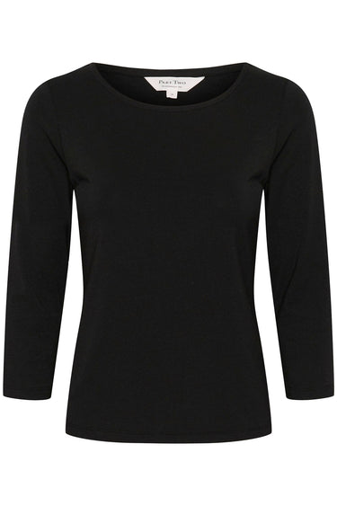 OBS! Fjernlager. Levering kan blive forlænget med 2-3 dage, hvis varen ikke findes i vores butik lige nu.Smart t-shirt fra Part Two med ½ lange ærmer, bådudskæring i halsen og et fint stribet print.
