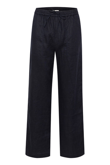 OBS! Fjernlager. Levering kan blive forlænget med 2-3 dage, hvis varen ikke findes i vores butik lige nu.Smarte hør bukser fra Part Two med et straight-leg snit, en afslappet silhuet og en bred elastikkant med bindesnor i taljen.