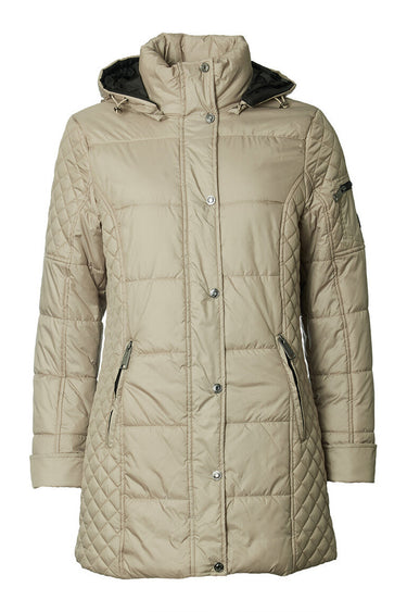 OBS! Fjernlager. Levering kan blive forlænget med 2-3 dage, hvis varen ikke findes i vores butik lige nu.Danske Danwear står bag denne lange quiltede jakke der helt sikkert holder varm vinteren igennem. Den er lavet i en genanvendt polyester som har mange egenskaber: den er vindtæt, afviser vand, tørrer hurtigt og er åndbar.Samtidigt kan man tilføje at den er holdbar. Høj kvalitet forenes med eksklusive detaljer. Jakken har en lynlås og trykknaplukning, den justerbare hætte er aftagelig med lynlås, håndlommerne er foret med lækkert stof. Der findes også en sporty lomme med lynlås på ærmet og en inderlomme med knap. Denne model er designet til at fungere lige så godt på vandreture som til daglig brug.