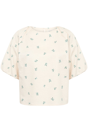 - OBS! Fjernlager. Levering kan blive forlænget med 2-3 dage, hvis varen ikke findes i vores butik lige nu.Smart bluse fra Part Two med ½ lange pufærmer, rund hals og et skønt print.