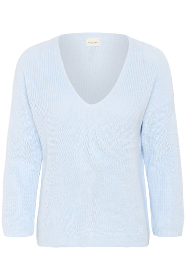 OBS! Fjernlager. Levering kan blive forlænget med 2-3 dage, hvis varen ikke findes i vores butik lige nu.Smart strik fra Part Two med ¾ lange ærmer, v-udskæring i halsen og en afslappet silhuet.
