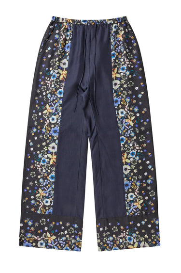 Bukser fra Munthe lavet af 100% silke, designet med et elegant print, som er lavet af blomster Naja Munthe har plantet i sin egen have. Disse bukser har lommer og en bindebånds detalje i taljen.