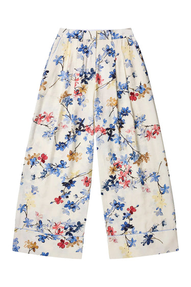 OBS! Fjernlager. Levering kan blive forlænget med 2-3 dage, hvis varen ikke findes i vores butik lige nu.Bukser fra Munthe med et smukt blomster print, brede ben, og elegante detaljer som piping, læg og lommer i siderne. Bukserne lukkes med en lynlås foran.