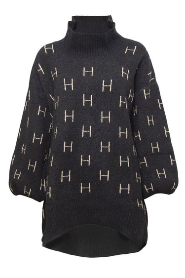 OBS! Fjernlager. Levering kan blive forlænget med 2-3 dage, hvis varen ikke findes i vores butik lige nu.Lækker oversized strik fra Hést med lange brede ærmer, høj hals og en super dejlig kvalitet.
