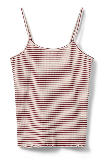 - OBS! Fjernlager. Levering kan blive forlænget med 2-3 dage, hvis varen ikke findes i vores butik lige nu.Smart basis top fra Sofie Schnoor med smalle skulderstropper, striber og en fin krøllet kant i bunden.
