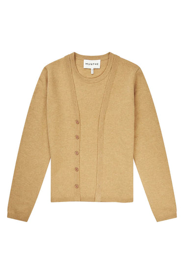 OBS! Fjernlager. Levering kan blive forlænget med 2-3 dage, hvis varen ikke findes i vores butik lige nu.Blød, smuk strik fra Munthe med en elegant knapdetalje foran. Denne strik er designet i 100% uld og og har en tætsiddende pasform.