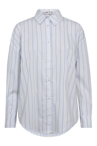 OBS! Fjernlager. Levering kan blive forlænget med 2-3 dage, hvis varen ikke findes i vores butik lige nu.Klassisk skjorte fra Haute L'Amitié med lange ærmer, krave i halsen og knaplukning langs fonten.