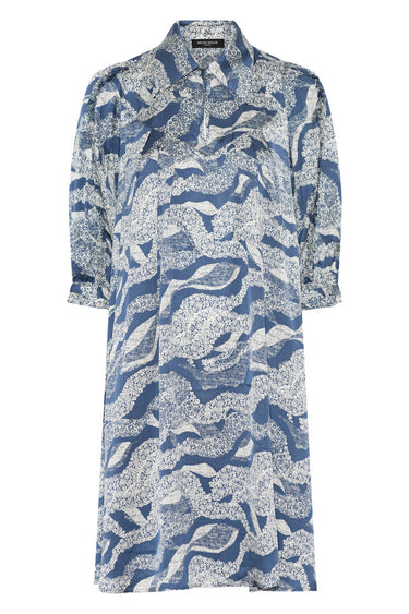 - OBS! Fjernlager. Levering kan blive forlænget med 2-3 dage, hvis varen ikke findes i vores butik lige nu.Super flot kjole fra Bruuns Bazaar med en bred krave i halsen, ¾ lange ærmer og et smukt print.