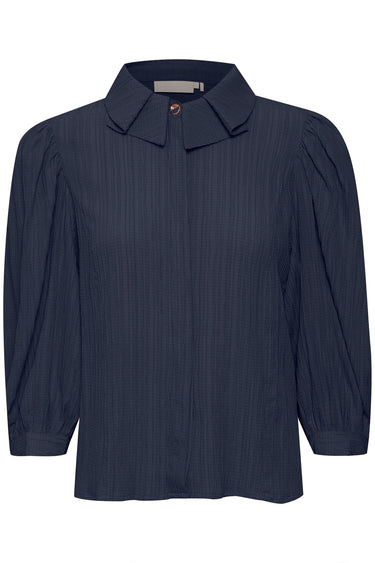Feminin og elegant bluse fra Karen By Simonsen med 3/4 lange pufærmer og en super fin krave i halsen.