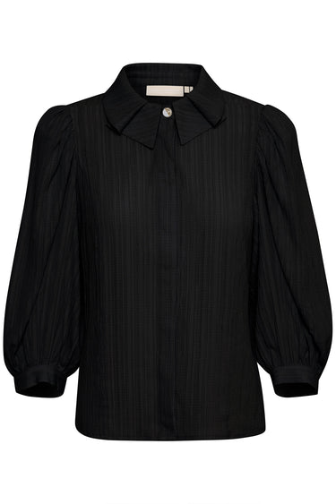 Feminin og elegant bluse fra Karen By Simonsen med 3/4 lange pufærmer og en super fin krave i halsen.
