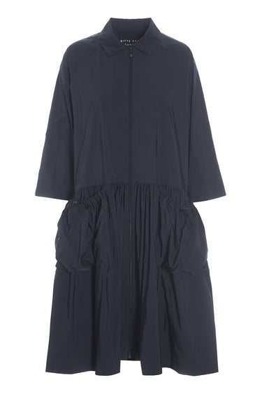 - OBS! Fjernlager. Levering kan blive forlænget med 2-3 dage, hvis varen ikke findes i vores butik lige nu.Kjole i knitrende lækkert poplinmateriale og med et cool oversize snit. Kjolen har store påsatte lommer med elastikstrop, der giver en rynkeeffekt. Et ægte keyitem, som kan bruges på mange måder - med bukser eller gamacher under og med bare ben på lune dage.