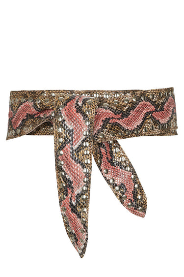 Lækkert bælte fra co'couture. Dette brede bælte har et cool snake print med nitter. Brug det til at fremhæve din talje på din yndlings kjole eller bukser.