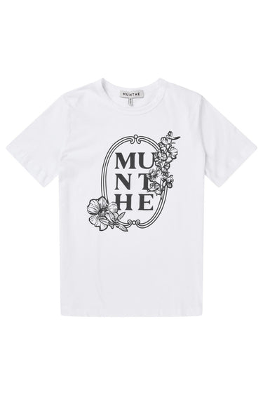 OBS! Fjernlager. Levering kan blive forlænget med 2-3 dage, hvis varen ikke findes i vores butik lige nu.T-shirt med et flot grafisk MUNTHE print. Denne T-shirt er designet i 100% økologisk bomuld og har en rund halsudskæring og korte ærmer.