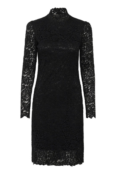 - OBS! Fjernlager. Levering kan blive forlænget med 2-3 dage, hvis varen ikke findes i vores butik lige nu.Smuk kjole fra Saint Tropez med lange ærmer, høj hals og den flotteste broderet blondekvalitet.Kjolen har også en tætsiddende pasform og et feminint udtryk.