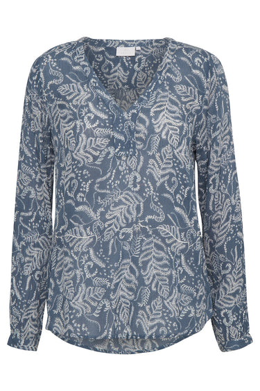 Blød og lækker t-shirt fra Kaffe med lange ærmer, v-has og et super fint print. T-shirten har også en dejlig afslappet pasform og en let kvalitet.