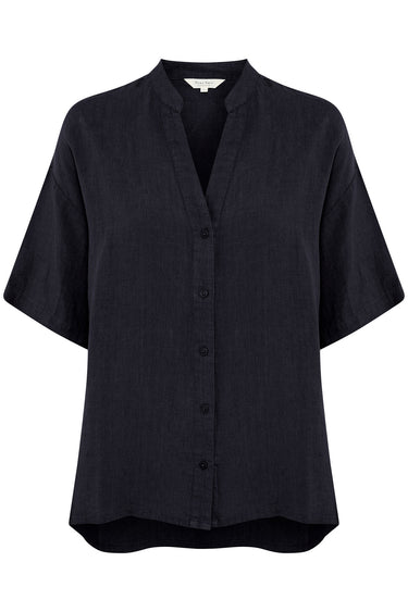 OBS! Fjernlager. Levering kan blive forlænget med 2-3 dage, hvis varen ikke findes i vores butik lige nu.Fin og enkel hør bluse fra Part Two med korte ærmer, v-udskæring i halsen og knaplukning langs fronten.